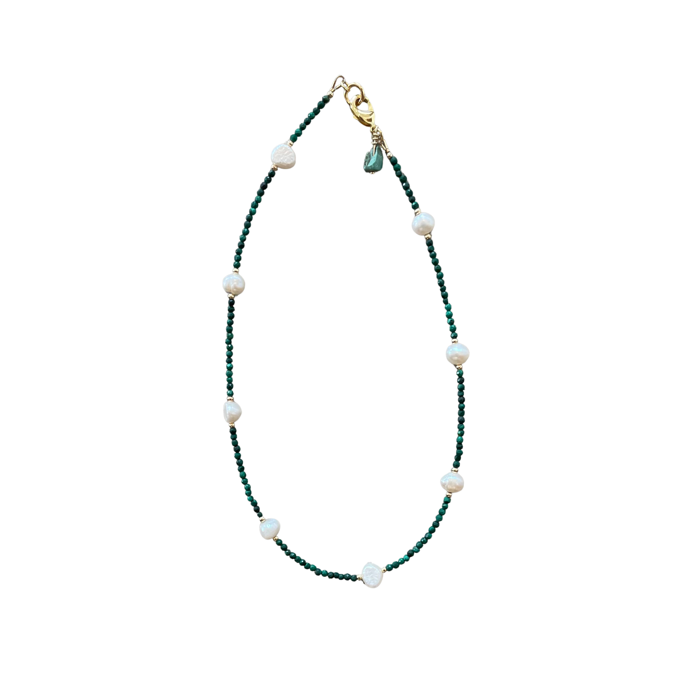 Gemstone Necklace - Malachite + Pearls