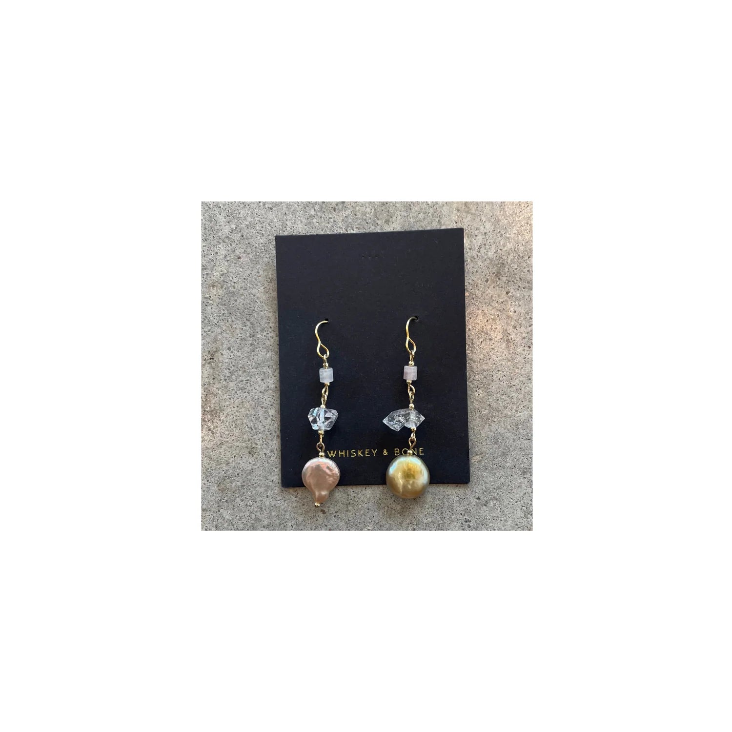 Taylor Earrings - Pearl, Herkimer + Rose Quartz